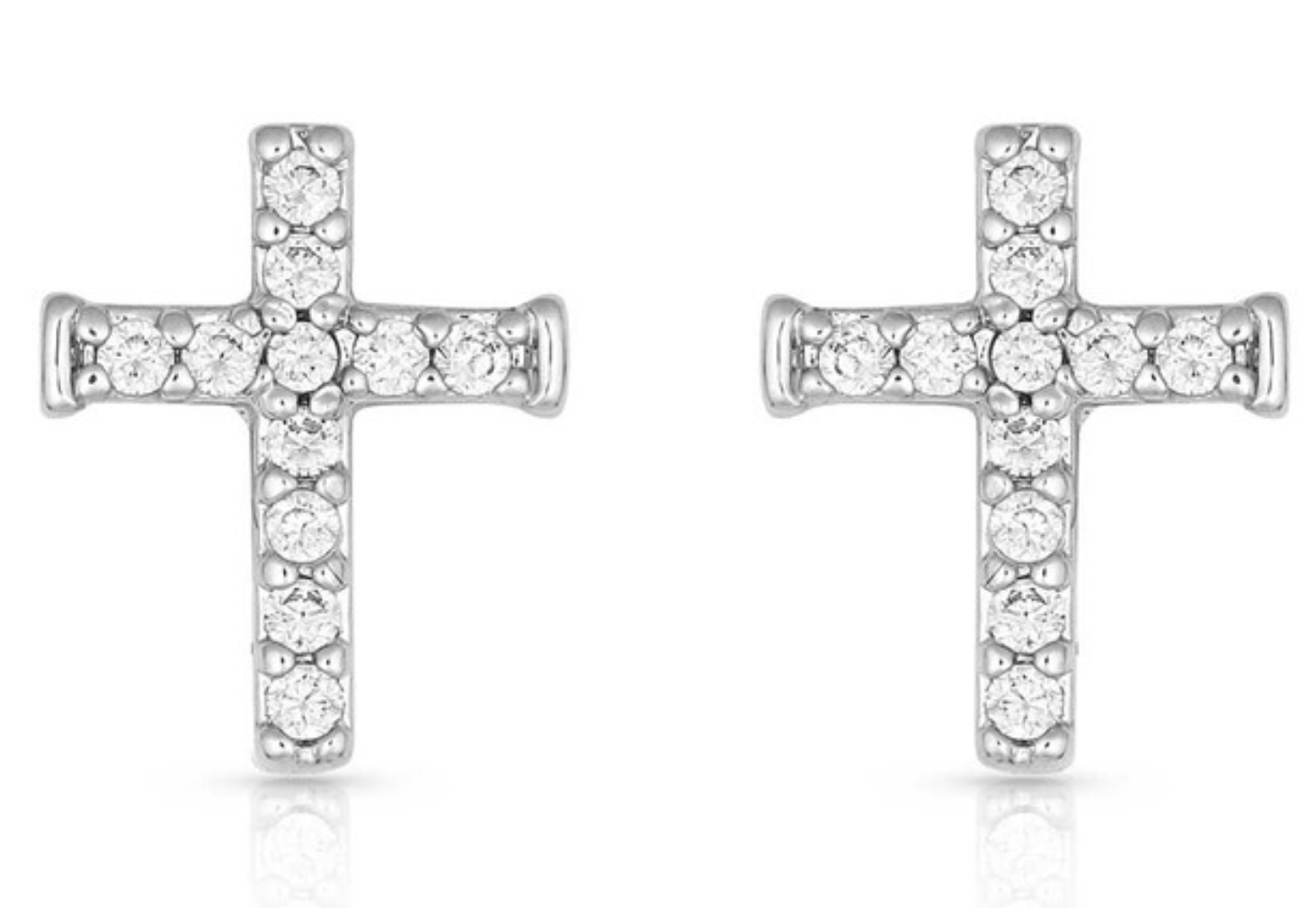 Small clear stones line a small silver finished cross with post backs.