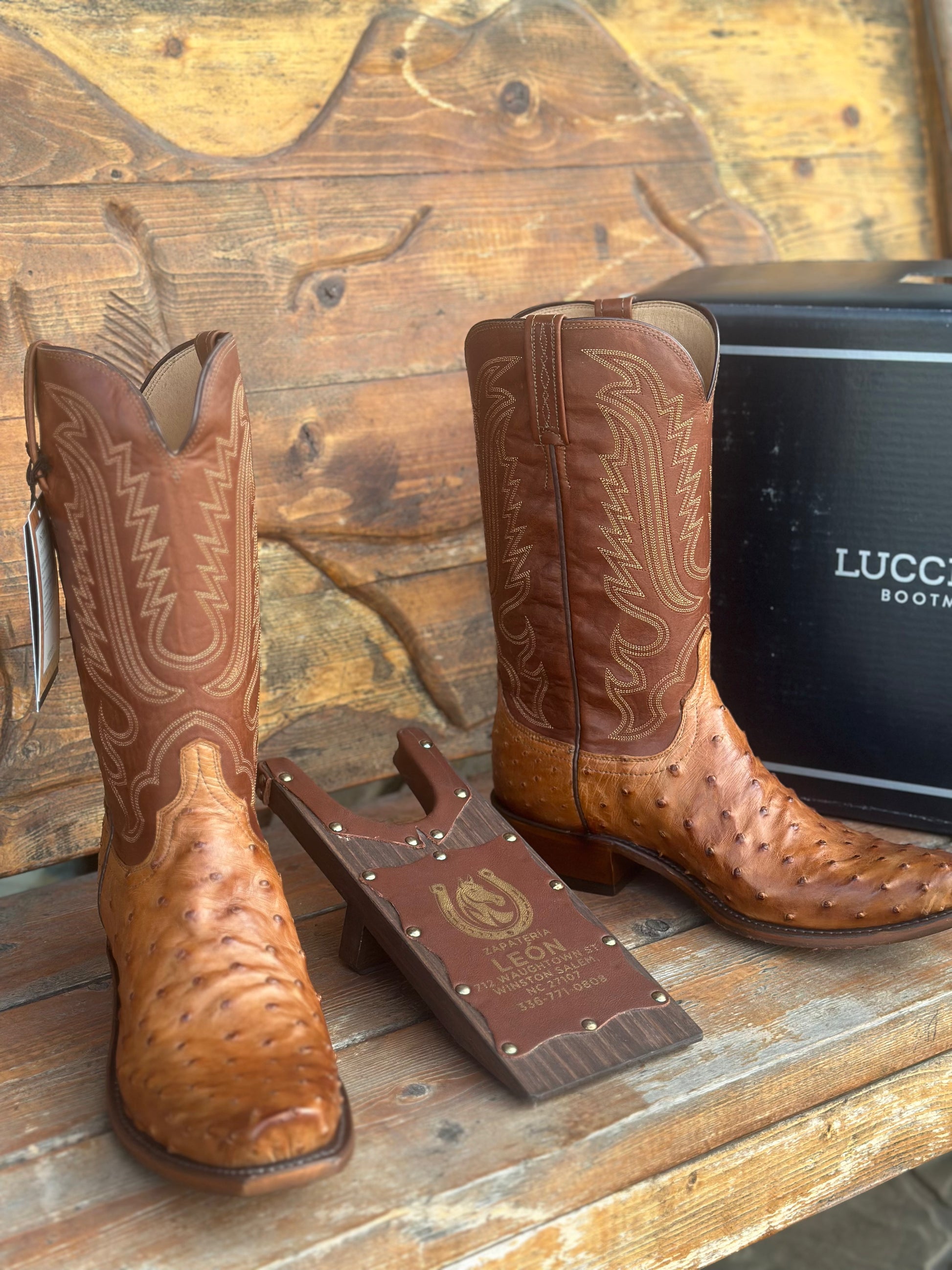 LUCCHESE “LUKE” BARNWOOD/TAN FULL QUILL OSTRICH COWBOY BOOT NO.1156.73